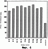 Фигура 4 является растровой репродукцией диаграммы в виде столбцов, показывающей действие 9 новых клонов на TRRE-активность на клетках C75R (клетках COS-1, трансфицированных для экспрессии TNF-рецептора). Каждый из этих клонов увеличивает TRRE-активность более чем в 2 раза.