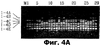 Подписи к фиг.4А и 4В являются теми же, что и к фиг.1. Номера дорожек соответствуют друг другу на фиг.4А и 4В.
