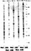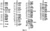 На фиг.5 основанные на MITE генетические маркеры отмечены более крупным шрифтом и жирным шрифтом. Можно видеть лишь локусы, выявляемые в акриламидном геле с флуоресцентно меченными ТЕМ-1 и ТЕМ-10. Локусы в скобках представляют собой те, которые не могли быть размещены с показателем LOD, большим или равным 2. На секвенирующем геле LI-COR с праймерами ТЕМ-1 и ТЕМ-10 выявлялось, соответственно, приблизительно 120 и 90 четких полос. Диапазон размеров выявляемых полос составлял приблизительно от 100 п.о. до 1 т.п.о. Часть результата амплификации с ТЕМ-1, визуализированного электрофорезом в полиакриламидном геле, представлена на фигуре 2.