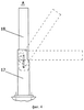 Верхние поверхности стеллажей 1, 2 и откидных площадок 3, 20 покрыты стальным просечным вытяжным листом. В зоне складирования на стеллажах 1, 2 установлены стойки 13 постоянной высоты и стойки 14 с регулируемой высотой. Между стойками уложены лежневые балки 15. Для обеспечения минимальной погрузочной высоты стойки 14 с регулируемой высотой изготавливаются шарнирно-сочлененного типа (фиг.3). Стойка 14 с регулируемой высотой состоит из жестко закрепленного звена 17 (фиг.4) и поворотного звена 18, в котором установлен палец 19, имеющий возможность перемещения по вертикальному пазу звена 17 с последующей фиксацией поворотного звена 18.