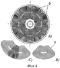 Фокусирующие катушки 9 обеспечивают стабилизацию положения облака электронов внутри камеры 4. Управляющие импульсы на них должны подаваться от электронной системы слежения за облаком. Учитывая, что кольцо электронов 15 будет обладать мощным гироскопическим моментом, фокусирующие катушки должны быть расположены с взаимным перекрытием (см. фиг.4а, b и c) так, чтобы можно было создавать управляющее магнитное поле, бегущее вдоль окружности кольца с частотой его прецессии. Управляя бегущим магнитным полем катушек 9, можно будет осуществить наклоны кольца в нужном направлении. Создавая бегущее силовое поле, действующее на кольцо, можно однозначно изменять положение гироскопического кольца в области камеры 4.