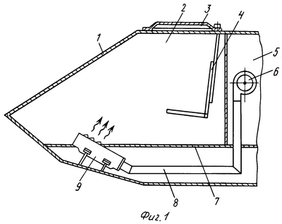 В электронагревательном устройстве 9, расположенном под поликом 7 в обитаемом среднем отделении 5, торец корпуса 15, противоположный входному патрубку 13, связан воздуховодами 8 с обитаемым пространством.