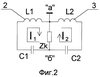 Предлагаемое изобретение поясняется чертежами, где на фиг.1 показана эквивалентная схема высокочастотного диэлькометрического измерителя неэлектрических величин, на фиг.2 – эквивалентная схема колебательного контура высокочастотного диэлькометрического измерителя неэлектрических величин, а на фиг.3 – вариант принципиальной схемы предлагаемого устройства. Высокочастотный диэлькометрический измеритель неэлектрических величин содержит измерительный автогенератор, выполненный в виде двухтактного автогенератора 1, к симметричному входу которого подключены два колебательных контура 2 и 3, содержащие индуктивности L1, L2 соответственно и общий измерительный конденсатор 4 с электродами 5 и 6. Общая точка индуктивностей L1 и L2 заземлена по высокой частоте. Между электродами измерительного конденсатора 4 расположено контролируемое вещество 7. Частота двухтактного автогенератора 1 определяется общей индуктивностью L1, L2 и емкостью С измерительного конденсатора 4. Емкость измерительного конденсатора, в свою очередь, зависит от диэлектрической проницаемости контролируемого вещества 7.