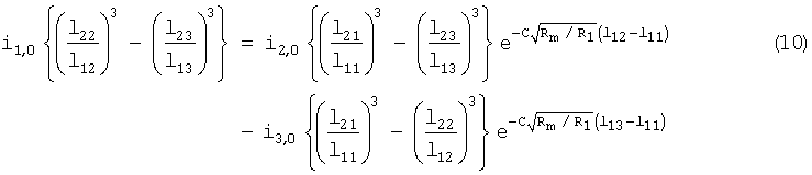 После исключения i1 (1) и i1 (2) можно записать выражение в терминах контраста Rm/Rt удельного сопротивления