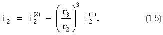 Далее переменный ток, имеющий известные параметры, снова проходит через передатчик T1, в то время как переменный ток, масштабированный коэффициентом -{ +(r2/r1)3}, одновременно проходит через передатчик Т2, и переменный ток, масштабированный коэффициентом (r3/r2)3, проходит через Т3. Масштабирующий коэффициент подбирается так, чтобы суммарный ток был равен нулю
