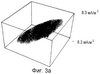 фиг.3а изображает рассчитанный график плотности электрического тока, параллельно смещенного от центра наклоненного или поперечного магнитного диполя в стволе скважины,