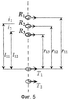 Далее переменный ток с известными параметрами снова проходит через передатчик T1, в то время как переменный ток, масштабированный коэффициентом (l22/l12)3, одновременно проходит через передатчик Т2. Ток, индуцированный вдоль ствола скважины, измеряют третьим датчиком i3. Этот ток, связанный с T1 и Т2, выражается как