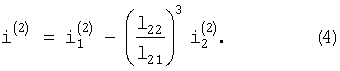 Далее переменный ток, имеющий известные параметры, снова проходит через передатчик T1, в то время как переменный ток, масштабированный коэффициентом -(r2/r1)3, одновременно проходит через передатчик T2, переменный ток, масштабированный коэффициентом , проходит через Т3, и переменный ток, масштабированный коэффициентом (r4/r3)3, проходит через Т4. Масштабирующий коэффициент подбирают так, чтобы суммарный ток был равен нулю