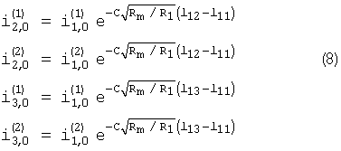Предполагая зависимость тока моды нулевого порядка в виде ехр {-С (Rm/Rt)L}, можно записать следующие соотношения,