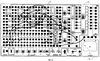 1. Обучаемый по методическому заданию выполняет сборку параллельного двухразрядного АЦП, схема которого приведена на фиг.7а. Сборка выполняется при использовании резисторов набора резисторов 17 и аналоговых компараторов блока 19 путем соединения соответствующих гнезд наборного поля 24 с помощью перемычек 25, как показано на фиг.8. В этом случае коммутаторы 11 и 12 должны быть установлены в положение “0”. Обучаемый устанавливает соответствие входного напряжения Ux, которое подается в схему от регулятора напряжения 21 и отображается на вольтметре 23, и выходного кода блока аналоговых компараторов 19, который отображается светодиодами блока индикации 13. Результаты заносятся в таблицу (фиг.7б). Пороги срабатывания компараторов блока 19 легко изменяются путем установки различных значений опорного напряжения Uоп на регуляторе напряжения 21. Для преобразования весового кода в двоичный, обучаемый может синтезировать с помощью средств булевой алгебры простейшую комбинационную схему неполного шифратора и легко собрать ее из имеющихся логических элементов.