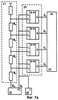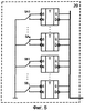 При изучении работы комбинированных устройств, например, цифроаналогового или аналого-цифрового преобразователей, используются аналоговый сумматор 9 (фиг.3), блок переключателей 7 (фиг.4), и блок компараторов 19. Для задания входных воздействий используются переменное и опорное напряжения, которые подключают в схему от соответствующих гнезд регулятора напряжения 21 с помощью перемычек-соединителей 25. Контроль уровня напряжения осуществляется вольтметром 23.