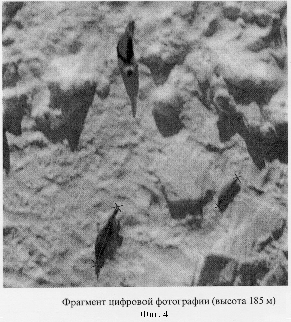 Для обработки были отобраны снимки, на которых тюлени занимали преимущественно горизонтальное положение (фиг.3, 4), проводили визуальную дифференциацию животных по окраске.