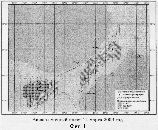 Предложенный способ значительно расширяет возможности авиасъемки и может быть использован на всех рыбопромысловых бассейнах.