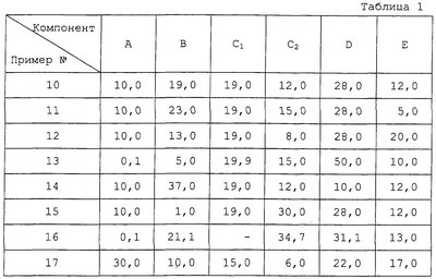 В предпочтительных композициях используется минимальное количество наполнителей. Это приводит к экономии при производстве и регулированию необходимых условий. Одно соединение из каждой из групп b)-e) является предпочтительным.