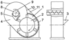 Выгрузное приспособление, предназначенное для выгрузки измельченных частиц заданного размера, расположено в центре обводного канала 4.