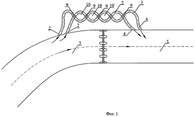 Дополнительный проточный тракт 7 выполнен с длиной, равной длине водопроводящего тракта 1, причем он сообщен с водопроводящим трактом 1 посредством сопрягающих узлов 9, образованных посредством пересечения под углом к друг другу дополнительного проточного 7 и водопроводящего трактов 1 с образованием замкнутых участков 10, а головная 2 часть дополнительного проточного тракта 7 выполнена параллельной головной 2 части водопроводящего тракта 1.