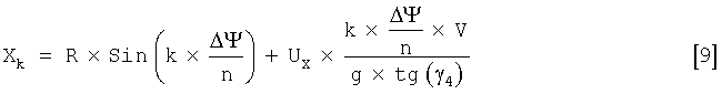 Дальность полета по заранее известному маршруту определяют как сумму длин участков полета между ППМ (как показано на фиг.1, поз.8) плюс дальность до очередного ППМ, которая определяется во всех современных навигационных системах. Развернутую дальность полета до ВПП при полете к 4-ому развороту с произвольным курсом определяют как сумму расстояний до 4 разворота, длины пути на развороте и расстояния от расчетной точки окончания 4-го разворота до ВПП: