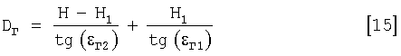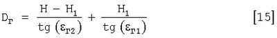 При снижении ниже заданной высоты входа в конечную глиссаду H1 глиссадную дальность определяют по формуле 14.