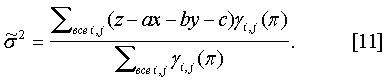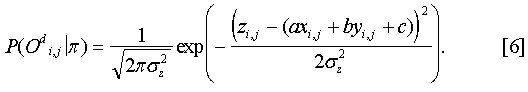 Из формулы [6] можно понять, что плоскостная плотность распределения описывает нормальное распределение со средним =axi,j+byi,j+с и дисперсией 2 z. В описании параметры плоскостной компоненты будем обозначать m=(а, b, с, 2 z) для m=1, 2, 3.