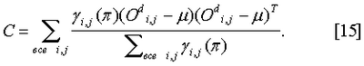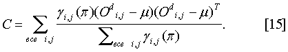 Из этого апостериорная вероятность i,j( ), вектор математических ожиданий и вектор ковариаций С получаются после решения следующих уравнений Е-шага (оценка):