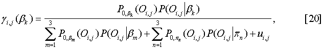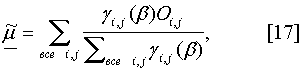 В формуле [16] uij – это плотность равномерного распределения, соответствующего классу оставшихся данных в области головы. Параметры гауссовского пятна, соответствующего голове, пересчитываются с использованием алгоритма МО для плотности нормального распределения:
