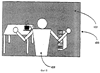 Расположение оборудования для конкретной реализации показано на фиг.4. В данной реализации объект 400 сидит перед компьютером или терминалом 410. Над терминалом располагается устройство 420, формирующее изображение. Устройство 420, формирующее изображение и показанное на фиг.4, является стереокамерой, однако в других реализациях может использоваться несколько камер.