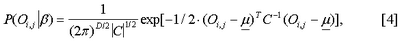 В изображении объекта вектор наблюдений Оi,j является пикселем в i-й строке и j-м столбце изображения и состоит из трехмерного положения пикселя Оd ij={х, у, z}ij, получаемого из карты различий в глубинах, и из цвета пикселя в пространстве изображения Oc ij, Оij получается соединением цвета Oc ij и различия в глубине Оd ij.