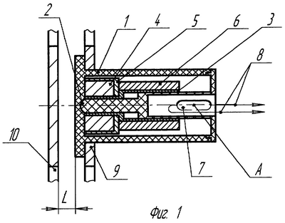 Корпус 1 устройства выполнен в виде цилиндра из неферромагнитного ударопрочного материала, например пластмассы.