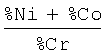 при этом отношение суммарного содержания никеля и кобальта к содержанию хрома находится в интервале 4÷13.