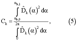 Если необходимо оценить мощность сигнала к-й ДН, излучаемого в пределах заданного углового сектора k,0 и k,1, результат выражения (4) следует умножить на следующий коэффициент: