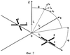На фиг.2 показаны прямоугольная и сферическая системы координат и взаимное размещение в этих системах двух ортогональных антенных систем.