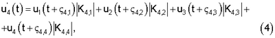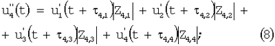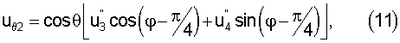Обозначим сигналы, на входе каждого из четырех вибраторов u1, u2, u3 и u4 соответственно (здесь индекс 1, 2, 3 и 4 определяется номером симметричного вибратора на фиг.2).
