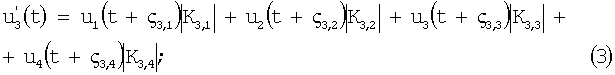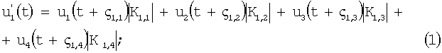 где – элементы матрицы К, которая является обратной по отношению к матрице Z нормированных взаимных сопротивлений; – частота полезного сигнала и сигнала помехи (следует заметить, что при несовпадении частот полезного сигнала и помехи для каждого из этих сигналов будет своя матрица взаимных сопротивлений). В результате суммарный сигнал будет являться суммой сигналов, описываемых выражениями (1)-(4) для полезного и помехового сигналов.
