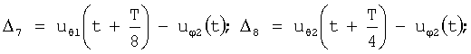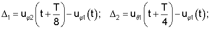 Если одна из гипотез верна, то ее гипотетические разностные сигналы совпадут с соответствующими разностными сигналами. Если угол близок к одному из четырех углов: , 0, и , то невязки между реальными разностными сигналами и соответствующими гипотетическими разностными сигналами будут меньше. Поэтому для вычисления невязок для каждой из гипотез в любой момент времени может использоваться формула вида