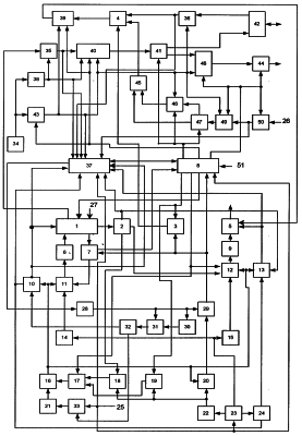 Блоки 1-24, 28-34 по назначению и структуре одинаковые с прототипом. Они могут быть реализованы на известных серийных элементах и узлах. Введенные блоки 35-50 могут быть реализованы на известных микросхемах. Функции блоков 3-20 и 23-50 могут быть выполнены программно с помощью ЭВМ.
