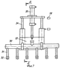 3. Агрегат для изготовления полых керамических изделий методом литья по п.1, отличающийся тем, что механизм (24) для подъема и опускания крышек (25) форм (3) содержит коромысло (40) с гребенкой (44), при этом коромысло (40) закреплено с возможностью поворота в подшипниках (41) на каретке (42), имеющей возможность перемещения по вертикальным направляющим (43).