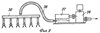 Агрегат для изготовления полых керамических изделий методом литья работает следующим образом. Вертикально-замкнутый конвейер (1) с люльками (2), несущими формы (3), приводится в прерывистое движение приводом (4), обеспечивающим плавное без рывков движение вертикально-замкнутого конвейера (1) и фиксированную остановку люлек (2) под всеми механизмами агрегата и соплами коробов (19) и (20) тепловентиляционной системы. Одновременно привод (10) осуществляет беспрерывное вращение вала кулачкового распределительного механизма средства для управления (9), управляющего работой переключающих клапанов вакуумной системы устройства для очистки форм (6), дозаторов (7), отсасывающего устройства (8) и питателя дозаторов (26). Кроме того, средство для управления (9) осуществляет с помощью кулачковых коромысловых механизмов открытие и закрытие клапанов дозаторов (7) и вертикальное перемещение кареток с бачками отсасывающего устройства (8).