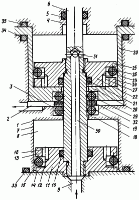 Уплотнение внутренних полостей от внешней среды осуществлено уплотнительными элементами 33, 34, 35.
