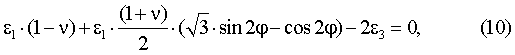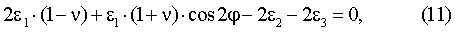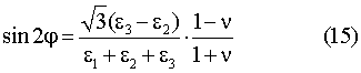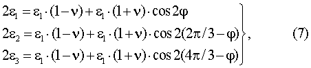 Подставляя, далее, вместо t азимуты соответствующих ЕПП 0, 2 /3 и 4 /3, получим выражения для относительных линейных деформаций по азимутам