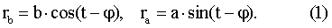 Как нетрудно увидеть из фиг.4, проекции радиус-вектора r на полуоси эллипса b и а равны соответственно