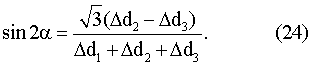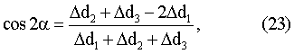 Таким образом, по измеренным значениям d1, d2 и d3 из соотношений (22-24) можно определить величину горизонтальной составляющей сдвиговых деформаций относительно вертикальной плоскости а также sin2 и cos2 , по которым однозначно определяется азимут простирания плоскости максимальной сдвиговой деформации .
