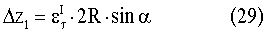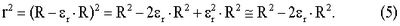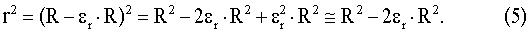 Здесь r. – относительная деформация радиус-вектора r. Приравнивая правые части уравнений (4) и (5), поделив обе части нового уравнения на R2 и введя обозначение R/R= l, имеющее смысл горизонтальной составляющей максимальной линейной деформации, получим