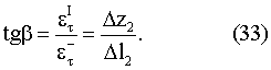 Как нетрудно убедиться, по найденным значениям и можно определить тангенс угла падения плоскости наибольших сдвиговых деформаций. При l=2R из соотношений (28, 32) получаем