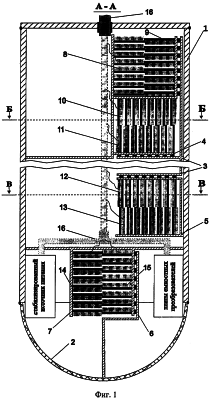 Каждый преобразователь (их всего 16) имеет отдельную плату в измерительном отсеке, подключенную к общему стабилизированному источнику питания (Фиг.1). Подзарядка источника питания и передача цифровой выходной информации на наземную станцию осуществляется через кабель 16. МСД, как и аналог, зацементирован в объект исследования (в дно скважины, в тело плотины, в стену сооружения и т.п.) с помощью расширяющегося при застывании цемента.