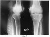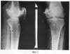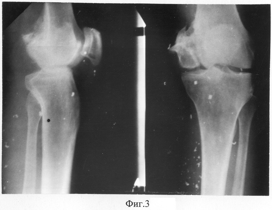 Фиг.3 – рентгенограммы коленного сустава пациента в прямой и боковой проекциях до лечения;
