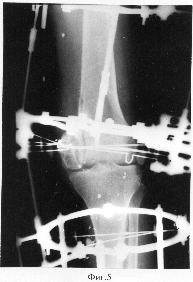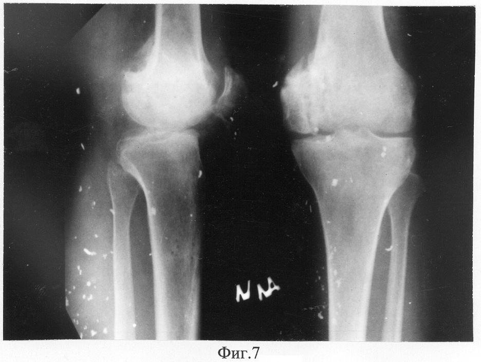Фиг.5 – рентгенограмма коленного сустава пациента в прямой проекции в процессе лечения;
