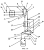 Кроме того, в процессе запуска холодильного устройства иногда возникает необходимость подстройки (регулировки) проходного сечения конечного дросселя. Лучше всего для этой цели подходит не вихревая труба, которая трудно поддается регулированию, а легко регулируемый игольчатый вентиль (пневмодроссель). Для этого холодный патрубок последней ступени, например ступени , соединен с входом холодоприемника через пневмодроссель 30 (фиг.12).