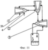 Рабочая схема холодильного устройства может строиться не только из двух, но и из большего количества последовательно соединенных вихревых труб (ступеней). На фиг.11 показана схема подобного трехступенчатого – – холодильного устройства, построенная из трех однопоточных вихревых труб.