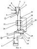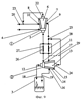 Другая вихревая труба, представляющая собой вторую (последующую) ступень , также содержит входной патрубок 11, холодный патрубок 12 и конусную камеру энергоразделения 13. Камера энергоразделения 13 заключена в герметичный корпус (кожух) 14, образующий охлаждающую полость 15, которая имеет входной 16 и выходной 17 патрубки.