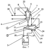 – фиг.3 и 4. Первая ступень состоит из двухпоточной вихревой охлаждаемой вихревой трубы, которая в отличие от однопоточной вихревой трубы (фиг.2) имеет горячий патрубок 22, связанный через тройник-смеситель 23 с выходным патрубком 20. В такой конструкции применение теплообменника 21 (фиг.3) не всегда обязательно (фиг.4);